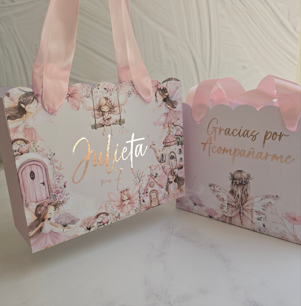 Bolsa tipo boutique con ondas en la parte superior, personalizable y original para dulceros. Aportan elegancia y sofisticación a eventos, son funcionales y se convierten en recuerdos encantadores. Disponibles en varios colores y estilos, se adaptan a cualquier temática y su espacio permite llenarlas con dulces y sorpresas, ofreciendo una presentación atractiva.