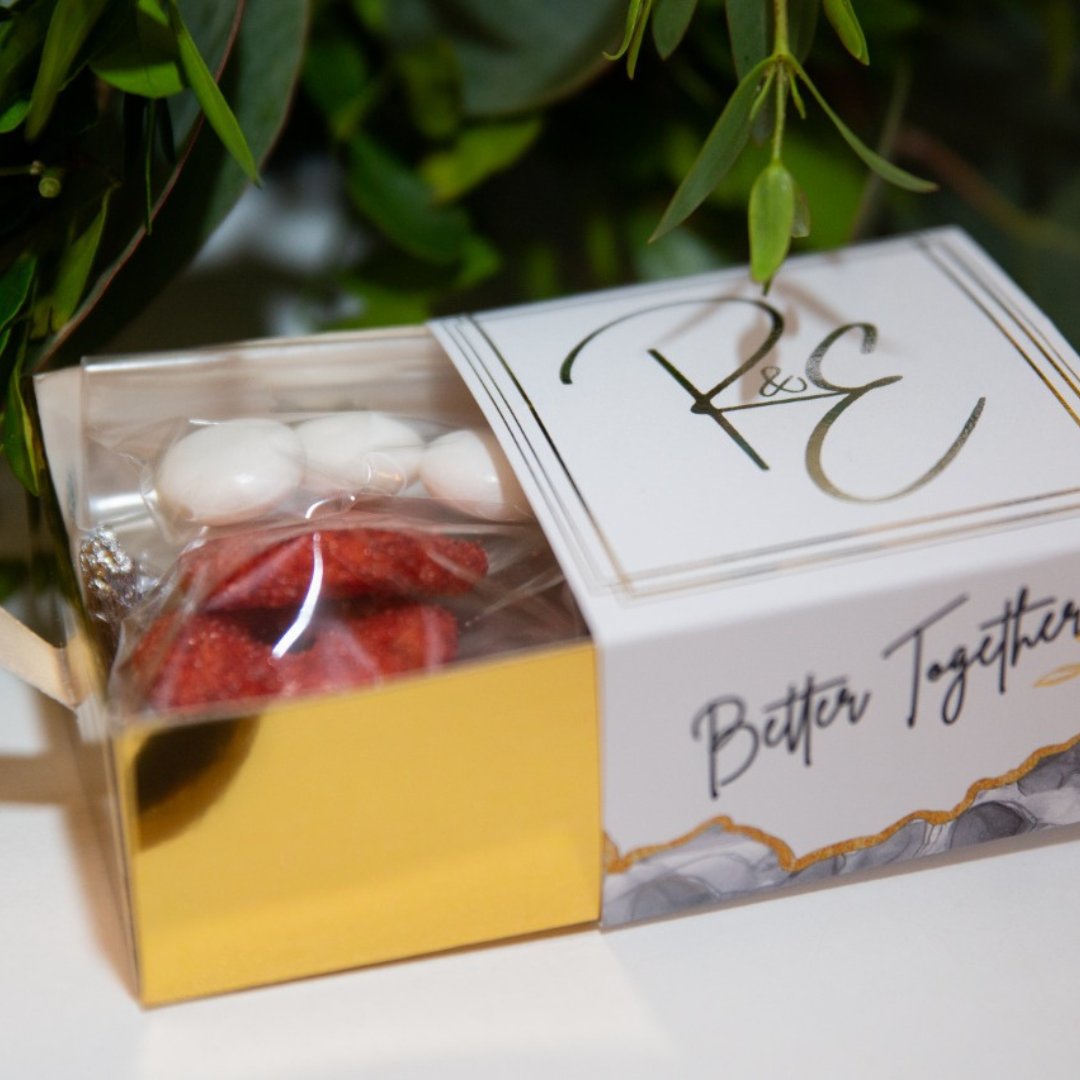 Sugerencias de relleno: chocolates, gomitas, gel anti-bacterial, mini cheesecake, almendras, chocopasas, galletas, macarrons.